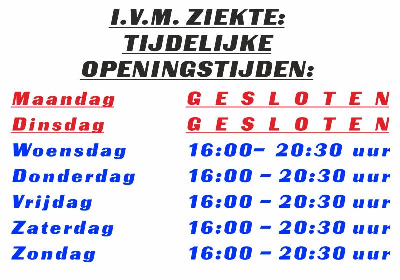 M.i.v. vrijdag 24/2 gaan wij weer AANGEPAST open: